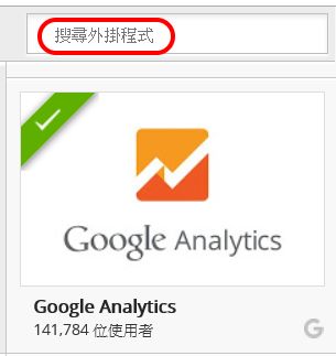 Google Analytics 通常都會排在外掛程式的前面,如果沒有,就用〈搜尋〉框。