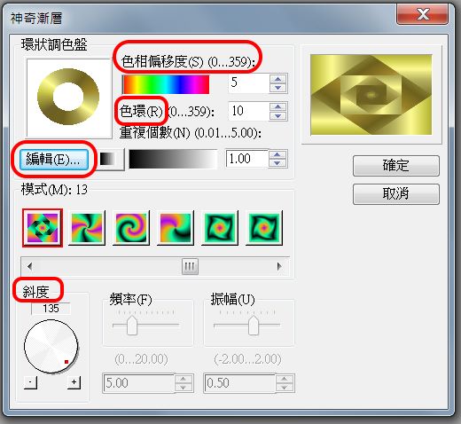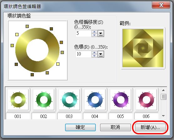 決定環狀調色盤、白光的角度。