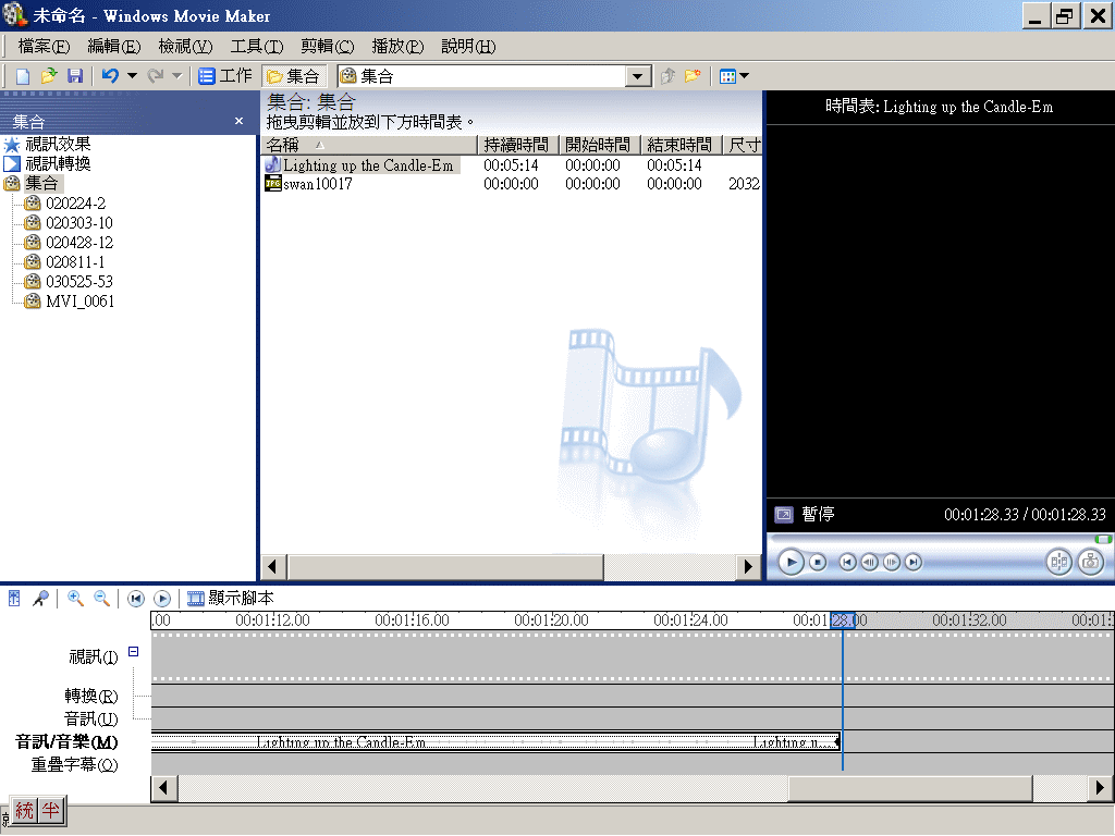 影象、圖片、動畫、音樂、音效檔,會直接放在「集合」下,但所有視訊、影片檔,會以「子集合」方式存放,目的是未來若剪開成片段後,便於管理。