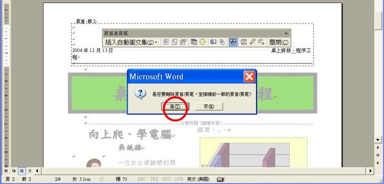 先解除連結,再移除封面的頁首與頁尾