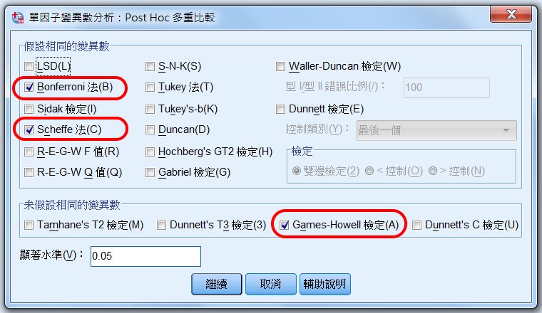 多重事後比較 Post Hoc 檢定