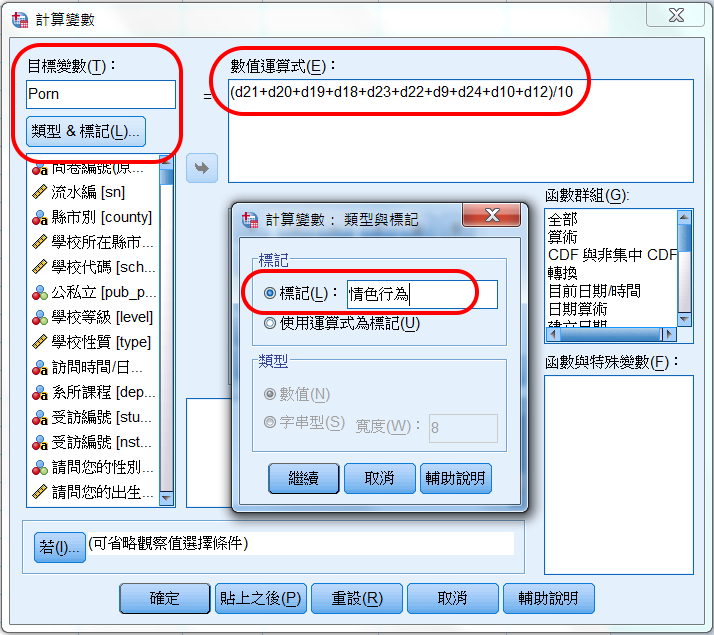 設定新變項名稱為 Porn