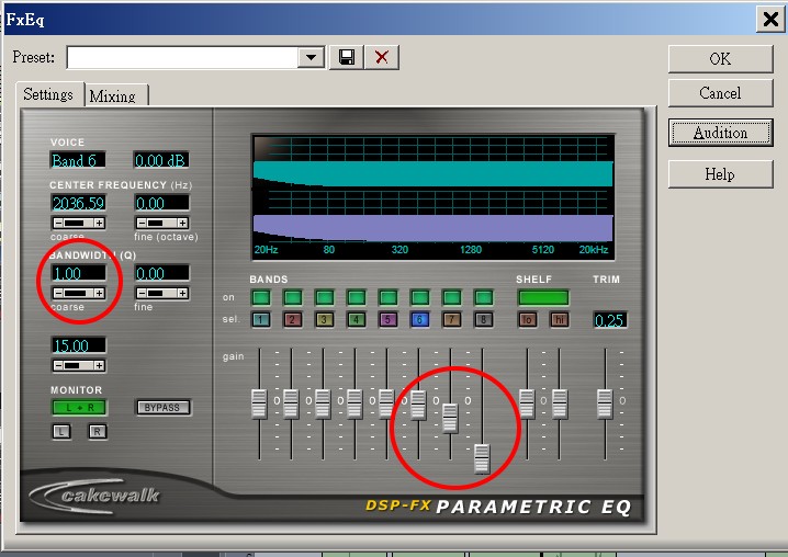 Click high-frequency bands (such as number 1 to 8) to decrease db.