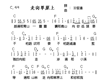 △走在草原上的作者王智遠,早已為您寫過許多好聽的流行歌曲。這首歌「大部分」採用五聲音階(沒有4和7),很合中國人的口味。